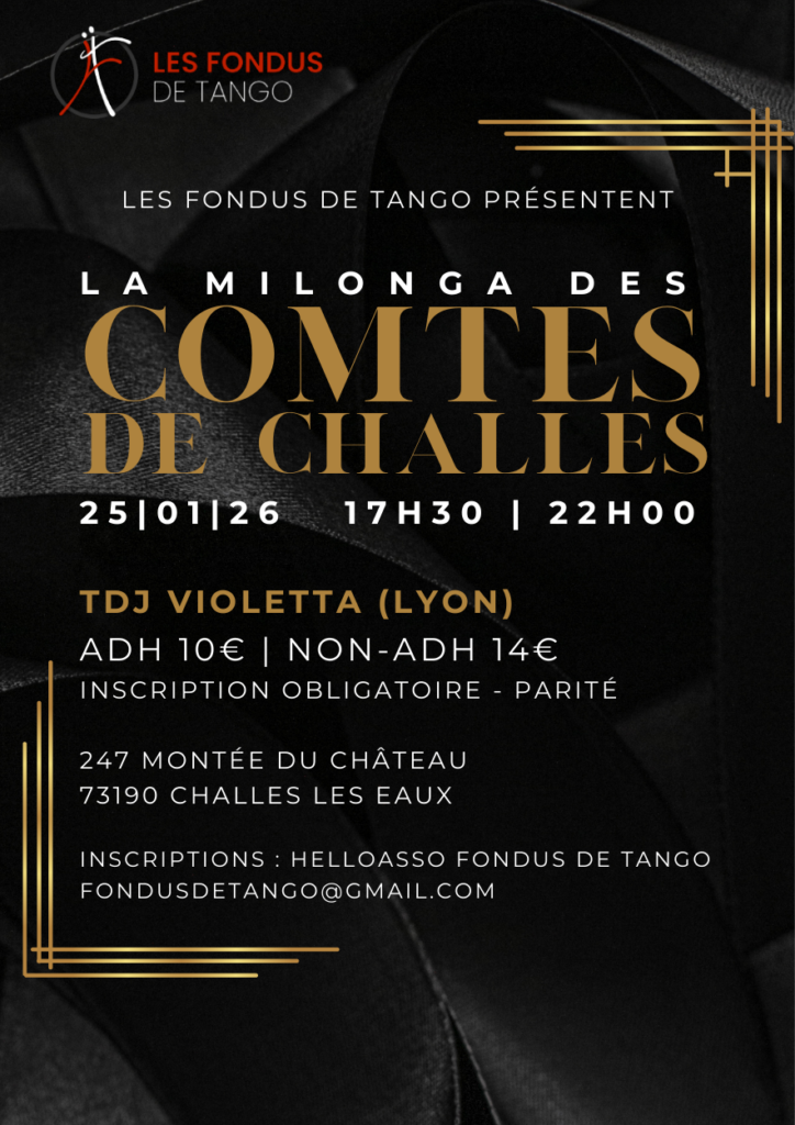 Milonga dans le château des Comtes de Challes 🎶 🏰 🎶. Sur inscription uniquement (pas de billetterie sur place) et limitée à 120 personnes.